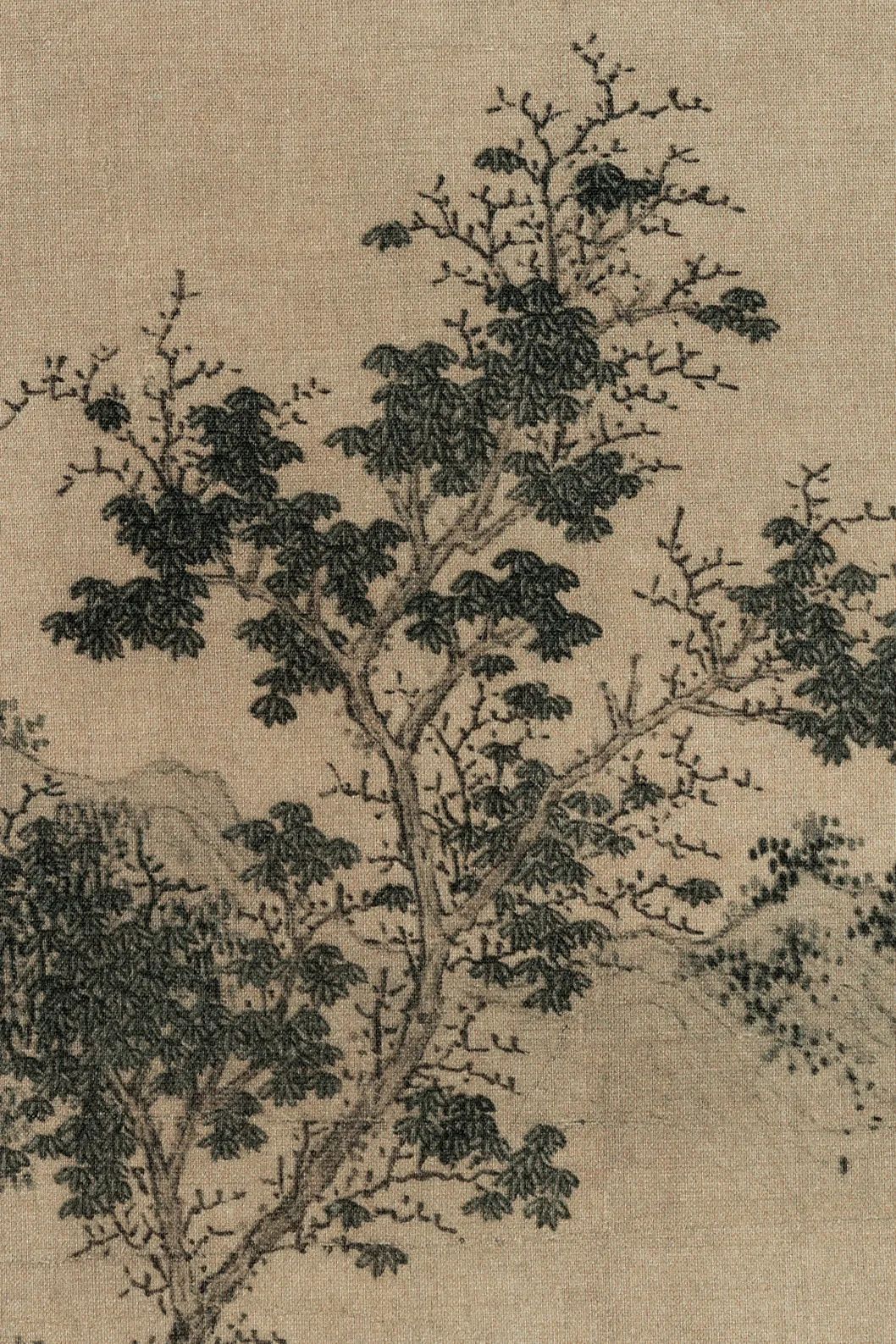 盛懋在传统隐逸题材中注入世俗趣味。垂钓翁虽着白衣,却无“独钓寒江雪”的孤绝,反以侧身姿态与飞鸿互动,暗示“身在江湖,心系魏阙”的矛盾。渔艇旁三只飞鸟振翅,既可视为对自由的向往,亦可解读为对仕途的隐喻。近岸两株乔木高耸,枝干低垂与矮树上扬呼应,形成“屈伸有度”的视觉语言,暗合文人“穷则独善其身,达则兼济天下”的处世哲学。