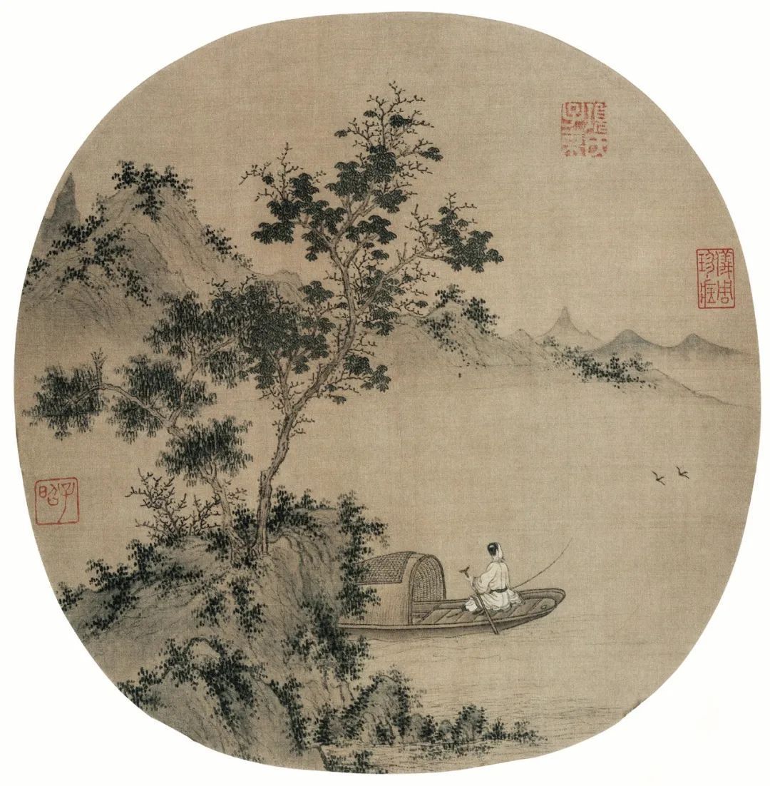 盛懋的《秋溪钓艇图》是隐逸美学的视觉变奏。它以渔艇为舟,载着文人的精神困境与世俗理想,在秋溪的涟漪中摇曳生姿。这幅作品不仅是对自然山水的描绘,更是对元代文人“半隐半仕”生存状态的深刻写照。